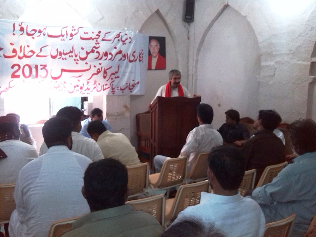 لیبر کانفرنس 8 اکتوبر 2013 بروز منگل پریس کلب سکھرمیں صبح 11 بجے منعقد کی گئی جس میں شاہ عبدالطیف یونیورسٹی ایمپلائز یونین، واپڈا اسکارپ خیرپور، واپڈا ہائیڈرو سکھر، ریلوے محنت کش یونین سکھر، ایگریکلچر ورکرز یونین خیرپوراور دیگر اداروں کے محنت کشوں نے بڑی تعداد میں شرکت کی۔ کانفرنس کے اختتام پرنجکاری کے خلاف پریس کلب سکھر کے سامنے مظاہرہ بھی کیاگیا۔