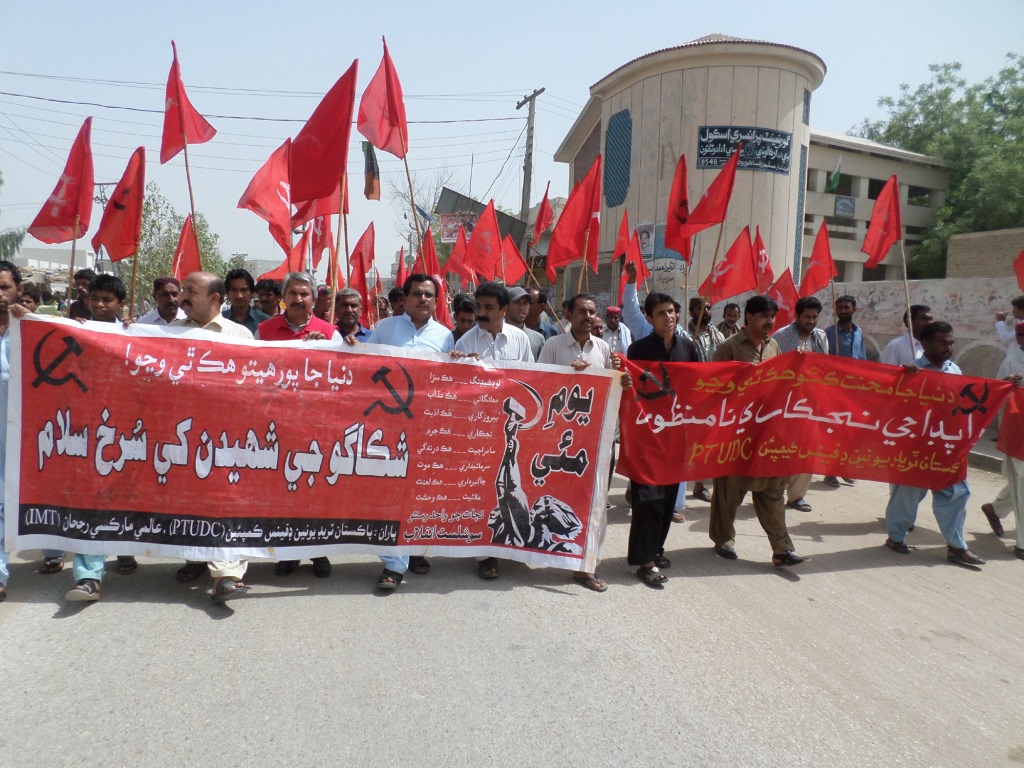 جلسہ کی صدارت پاکستان واپڈا ہائیڈرو الیکٹرک سینٹرل لیبر یونین دادو کے زونل چیئرمین نظیر پنہور نے کی جبکہ خطاب کرنے والوں میں، چاچا غلام قادر (انڑ ہوٹل ورکرز یونین)، عباس وگھیو (رکشہ یونین)، بیڑی ورکرز یونین کے دوست علی زؤنر، ڈویژنل چیئرمین محمد وریل میرانی،بیروزگار نوجوان تحریک کے صدر خالد جمالی، صدر PTUDC صوبہ سندھ انور پنہور ، سماجی رہنما محمد خان ملاح،واپڈا رہنما حیات خان پنہور شامل تھے۔ مقررین نے نجکاری، مہنگائی، بیروزگاری، لوڈشیڈنگ سمیت تمام مسائل کا حل اس سرمایہ دارانہ نظام کے خاتمے سے مشروط قرار دیا اور کہا کہ ایک بہتر اشتراکی نظام میں ہی انسان کی نجات ہے۔