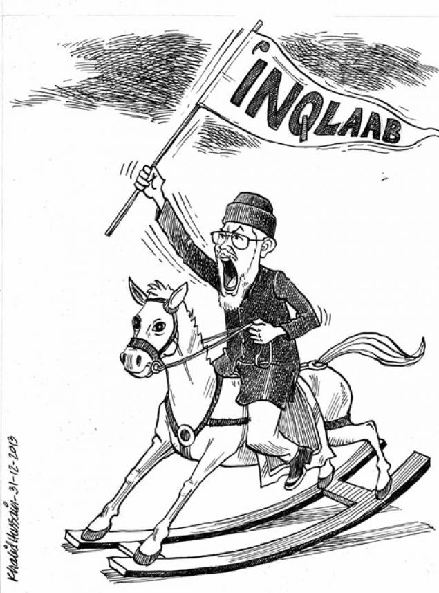 شیخ الاسلام مولانا ڈاکٹر علامہ طاہر القادری کو بھی ہر سال شدید سردی میں اپنے مریدین کا جم غفیر اکٹھا کرنے کی عادت سی ہوگئی ہے۔ موصوف اپنے جلسوں میں اس نظام کی سیاست اور معیشت سے اکتائی ہوئی عوام کو ’’انقلاب‘‘ کا سندیسہ دیتے ہیں۔ اس موقع پر اس نظام کی خرابیاں ماہرانہ اور جذباتی انداز میں گنوائی جاتی ہیں اور حکمرانوں کے کالے کرتوتوں کی تشریح بھی کی جاتی ہے۔ لیکن قادر ی صاحب کا مسئلہ یہ ہے کہ وہ نظام کی بنیادوں کو ہلائے بغیر نظام کی خامیاں دور کرنا چاہتے ہیں اور جہاں مشکل پیش آئے وہاں سارا کام اللہ میاں پر چھوڑ دیتے ہیں۔ مولانا کے دوسرے مفروضوں کی طرح ان کا انقلاب بھی ایسا ویسا نہیں ہے بلکہ یہ خالص ’’آئینی، قانونی اور پر امن انقلاب‘‘ ہے۔