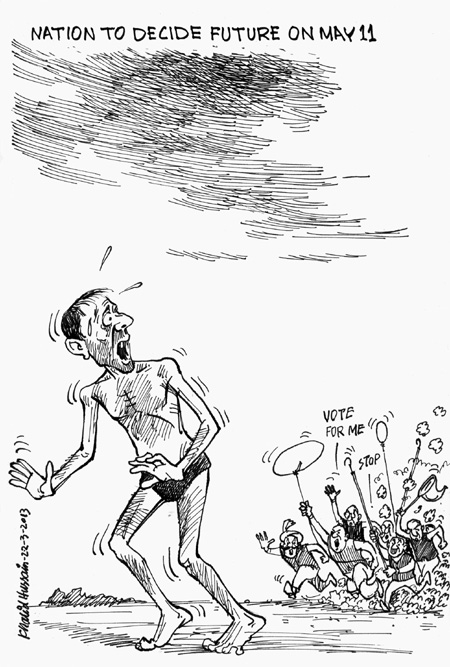 انتخابات کا جتنا شور ہے، اور ان کو شفاف بنانے کے لیے جتنی بھی اصلاحات کا ناٹک رچایا جا رہا ہے، یہ انتخابات اتنے ہی مکروہ اور جعلی نتائج بر آمد کریں گے۔ عوام کی اکثریت کا پارلیمانیت سے بھروسہ ہی اٹھ گیا ہے۔ وہ ووٹ یا تو دیں گے ہی نہیں یا بیچ دیں گے۔ خریدے ہوئے ووٹوں سے ہونے والے انتخابات کیسے شفاف ہو سکتے ہیں۔ عبوری وزیرِ اعظم کھوسو کی جگہ عشرت حسین بھی آ جاتاتو فیصلوں اور پالیسیوں میں کوئی فرق نہیں آنا تھا۔ بحران کی شدت میں انتخابات کے نتائج کو تشکیل دینا اسٹیبلشمنٹ اور سامراجیوں کے لیے ایک ڈراؤنا خواب بنتا جا رہا ہے۔ پہلے سے بھی زیادہ کمزور اور ہنگ پارلیمنٹ بنے گی جو پہلے سے زیادہ عالمی مالیاتی اداروں اور ریاستی خداؤں کی غلام ہو گی۔ نواز شریف اور عمران خان دونوں کو متحارب قوتیں اپنے اپنے ایجنڈے کے تحت وزیرِ اعظم بنانا چاہتی ہیں لیکن دونوں قوتوں کے داخلی تضادات ان کو لاحق ہیں، یہ بھی ممکن ہے کہ ان دونوں کو ملا کر حکومت بنانی پڑ جائے۔ پیپلز پارٹی بھی ہر قیمت پر اقتدار کے ساتھ بندھی رہنا چاہتی ہے۔ عمران خان کووسیع تر ’قومی مفاد‘ میں پیپلز پارٹی کے ساتھ بھی اتحادکرنا پڑ سکتا ہے۔ ن لیگ اور پیپلز پارٹی پہلے بھی اتحادی رہے ہیں۔ اے این پی اور ایم کیو ایم اقتدار سے باہر جانے کا سوچ بھی نہیں سکتے۔ مذہبی پارٹیوں میں شدید تضادات ہیں جن کو حل کرنے کی تمام تر کوششیں ناکام ثابت ہوئی ہیں۔ فضل الرحمان کی ان تھک کاوشوں کے باوجود جماعتِ اسلامی ن لیگ کے بجائے عمران خان کے ساتھ انتخابی اتحاد کا حصہ بن چکی ہے۔ چوہدری شجاعت بھی عمران خان کو تہہِ دل سے لاہور والے جلسے کی مبارکباد دیتے تھک نہیں رہے۔ ساری قسم کی مسلم لیگیں اور قوم پرست پارٹیوں کا مرکزی دفتر GHQ میں ہے۔ ان کو جب جہاں جانے کا کہا جاتا ہے وہ چلے جاتے ہیں۔ ڈاکٹر قدیر اپنی اصل یعنی جماعتِ اسلامی کی بغل میں جلو ہ افروز ہو چکے ہیں۔ شیخ رشید کی بکواس بھی رواں دواں ہے۔ طاہر القادری بھی پھر نئے سٹریٹ تھیٹر کی تیاریوں میں مصروف ہے۔ پرویز مشرف کا سیاسی مجرا بھی کوئی زیادہ دلفریب دکھائی نہیں دے رہا۔ اس ساری سیاسی غلاظت کے امتزاج پر مبنی انتخابات کو تبدیلی کا آغاز قرار دینے والے سرکس کے بندر وں سے بھی زیادہ کٹھ پتلیاں ہیں اور ان سے عوام اور محنت کش طبقے کو کئی سروکار نہیں۔
