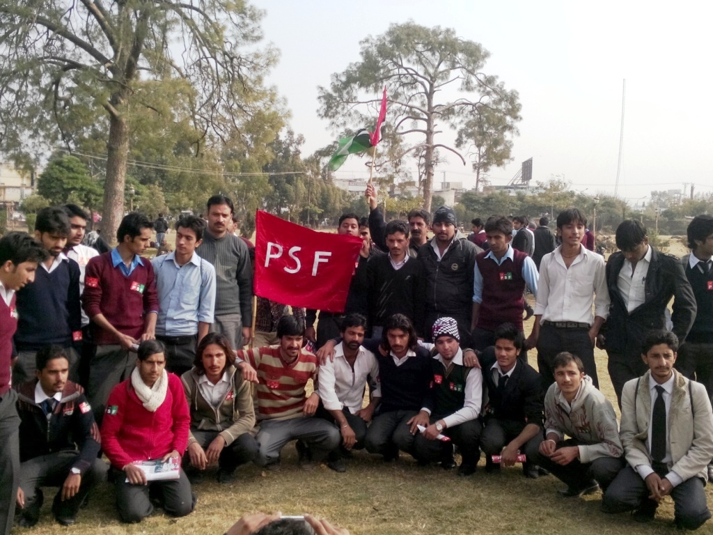 19 دسمبر دن 11 بجے راولپنڈی لیاقت باغ میں پیپلز سٹوڈنٹ فیڈریشن کی یونٹ سازی کی تقریب کا انعقاد کیا گیا جس میں بڑی تعداد میں گارڈن کالج اور اصغر مال کالج کے طلبہ نے شرکت کی۔ تقریب کا آغاز صہیب حنیف (سابق صدرPSF گارڈن کالج) نے پیپلز سٹوڈنٹ فیڈریشن کی تاریخ اور اغراض و مقاصد بیان کرتے ہوئے کیا۔ اس کے بعد اصغر مال کالج کے نومنتخب صدر عبدالوہاب نے اپنے خیالات کا اظہار کرتے ہوئے کہا کہ آج پورے پاکستان میں طالب علم بے شمار مالی اور تعلیمی مسائل کا شکار ہیں لیکن کہیں پر بھی ہمیں کوئی ترقی پسند طلبہ تنظیم نظر نہیں آتی جو حقیقی معنوں میں طلبہ کے مسائل کی لڑائی لڑ سکے۔ ایسے میں PSF نے طلباء کو منظم کرنے کی ذمہ داری لی ہے۔ ہم آنے والے دنوں میں تمام تر طلبہ کی سیاسی اور انقلابی تربیت کرتے ہوئے طلبہ یونین کی بحالی کی جدوجہد کا آغاز کریں گے۔ آج کے عہد میں PSF نوجوانوں کو انقلابی بنیادوں پر منظم کرنے میں اہم کردار ادا کر سکتی ہے۔ آخر میں انہوں نے طلباء کو اتحاد قائم رکھنے اور PSF کی بڑھوتری میں سرگرمی سے شرکت کرنے کی اپیل کی۔